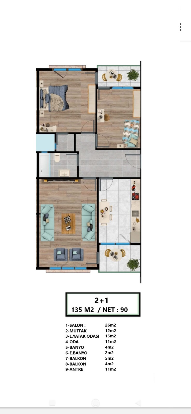 Daire tipleri: 2+1 • 3+1 • 4+1 • 6+1